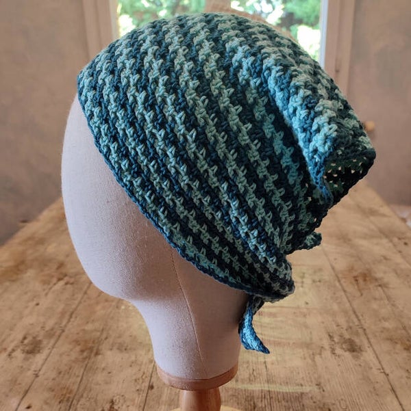 Voici de jolis bandanas/foulards crochetés à la main avec du fil 100% coton.